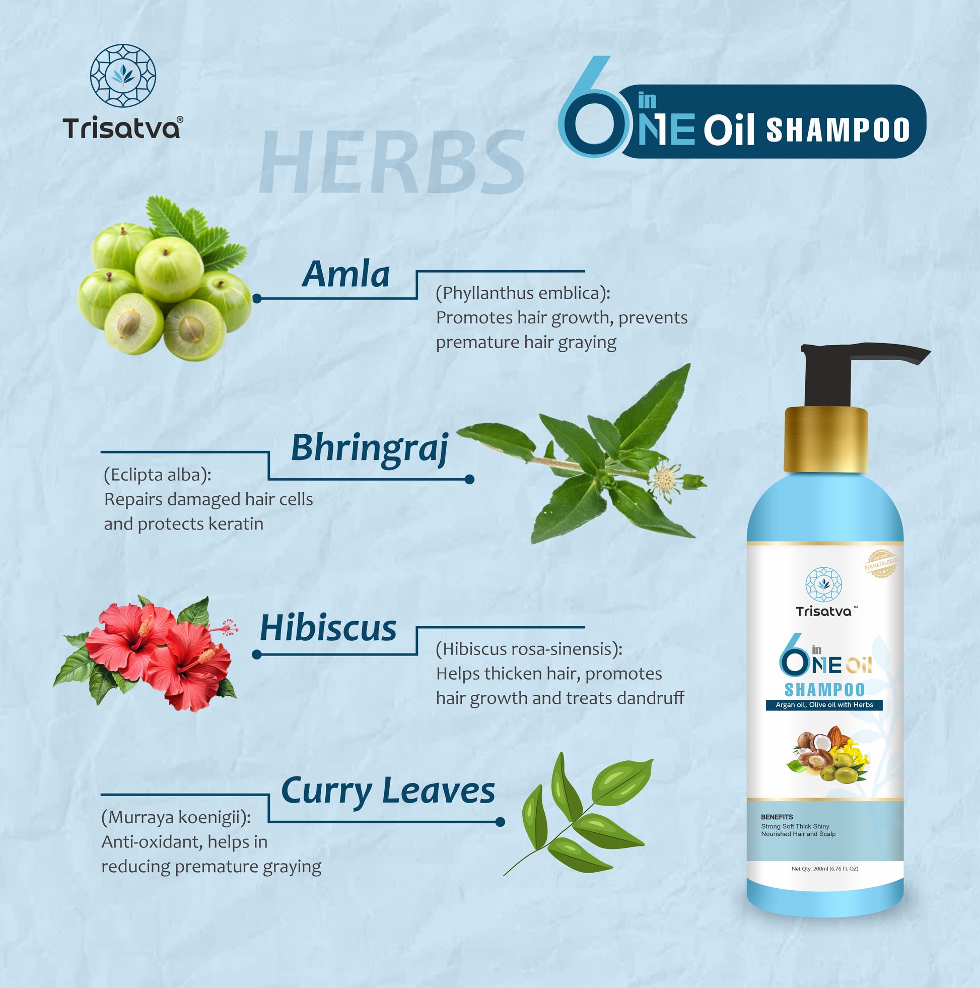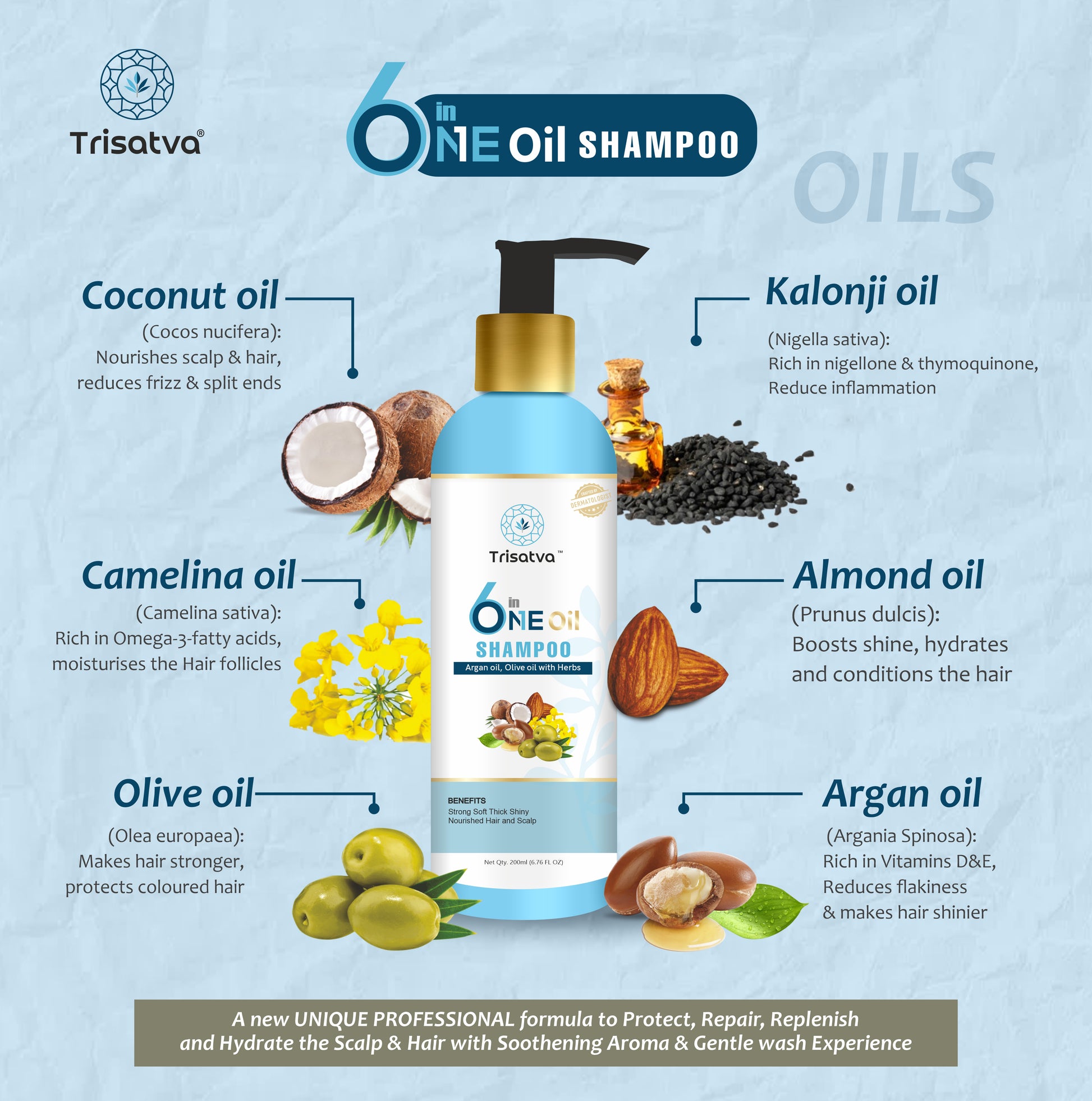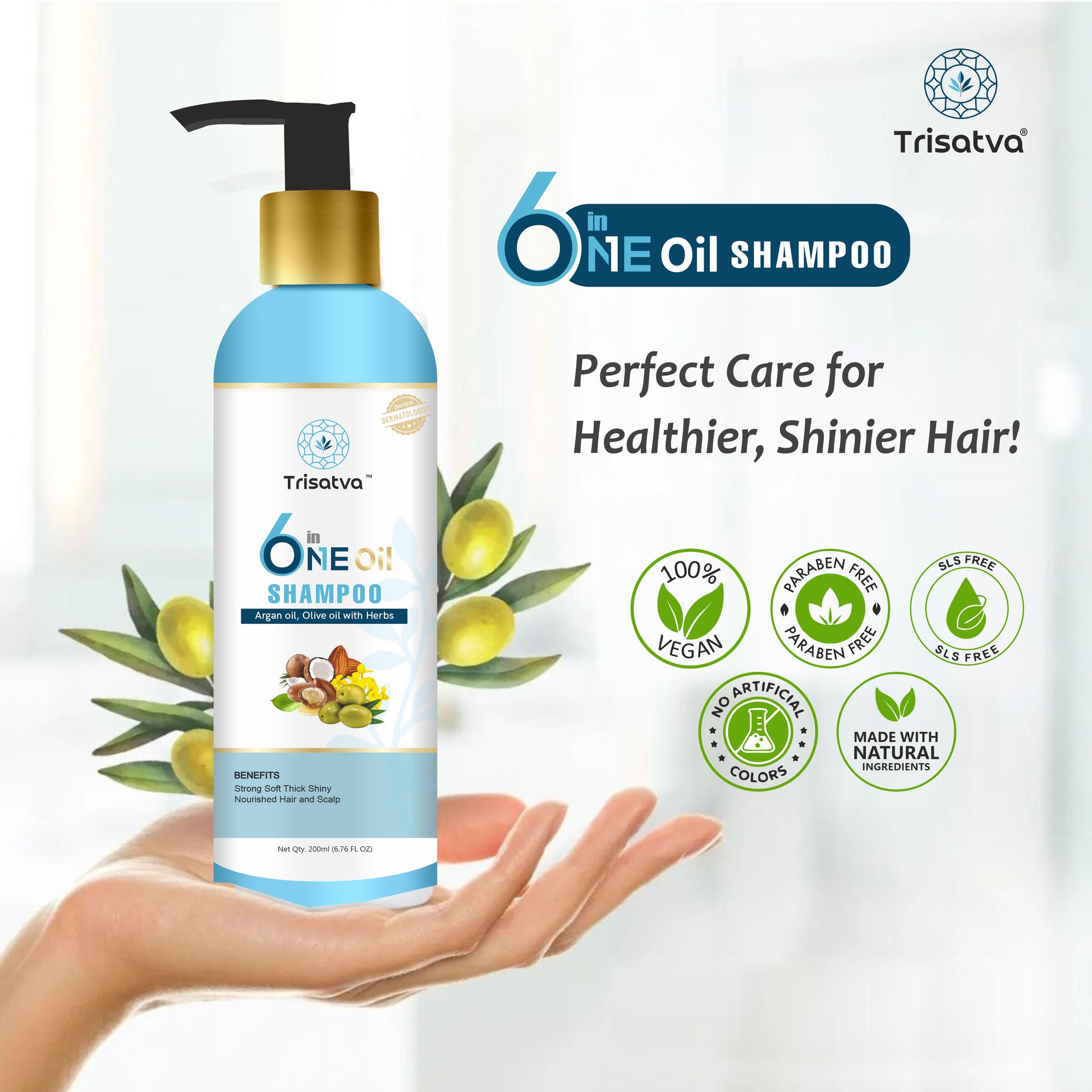Trisatva 6-in-1 Oil Shampoo | Professional Formula with 6 Oils & 4 Herb Extracts | Dry to Normal Scalp | Hybrid Shampoo for Soft, Shiny, Frizz-Free Hair | Men & Women, 200mL