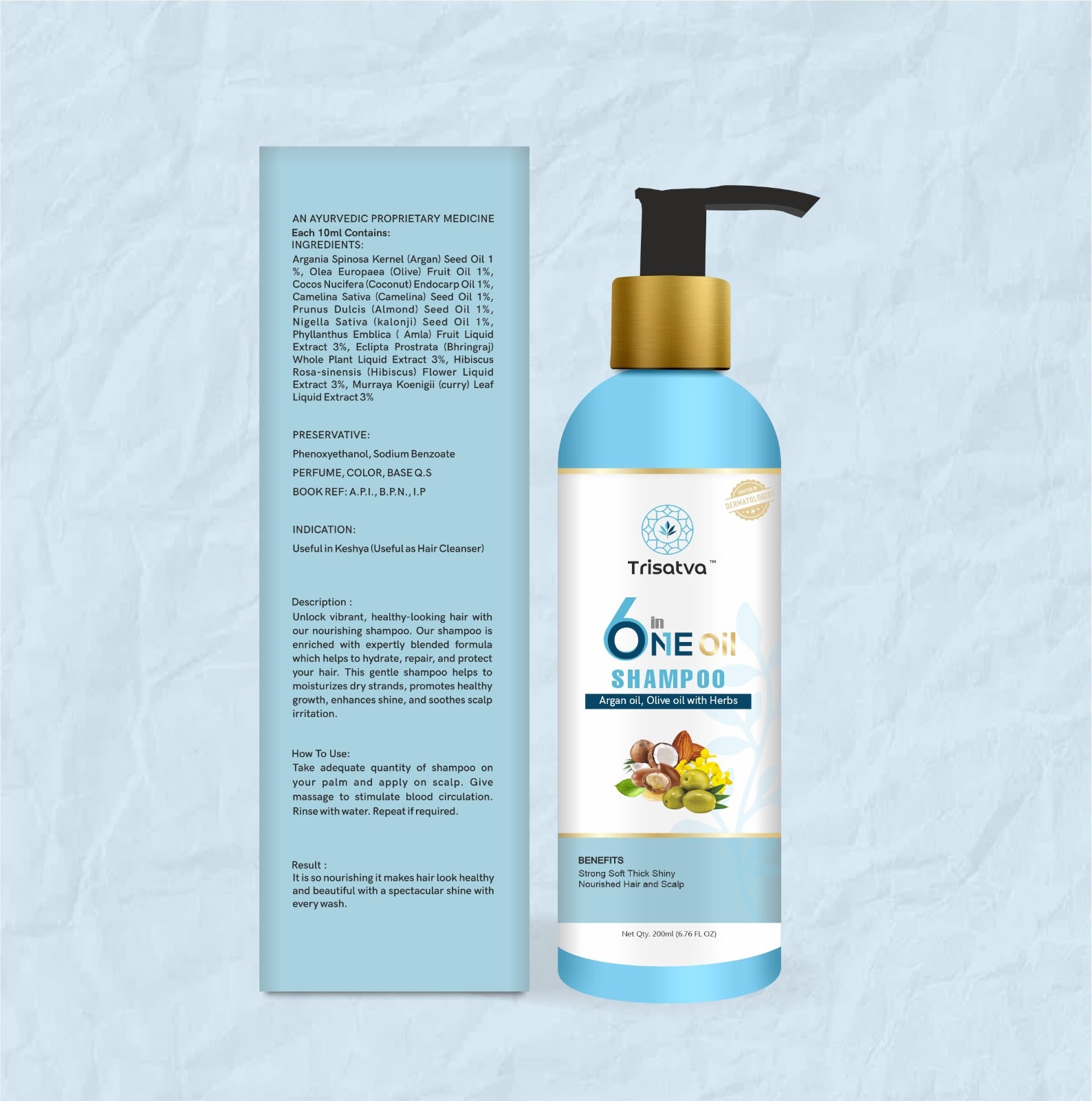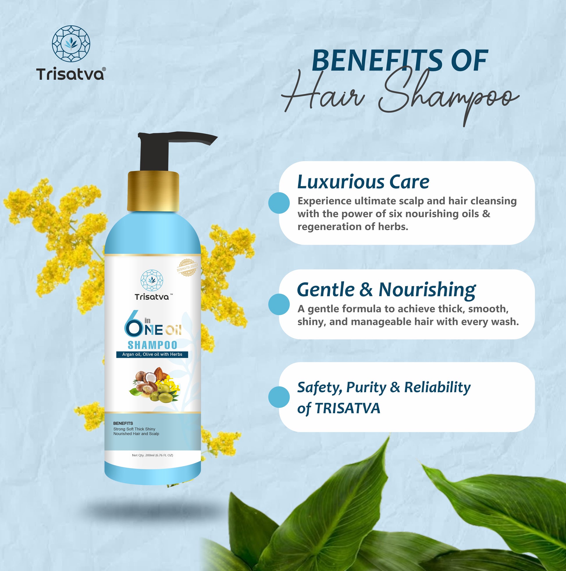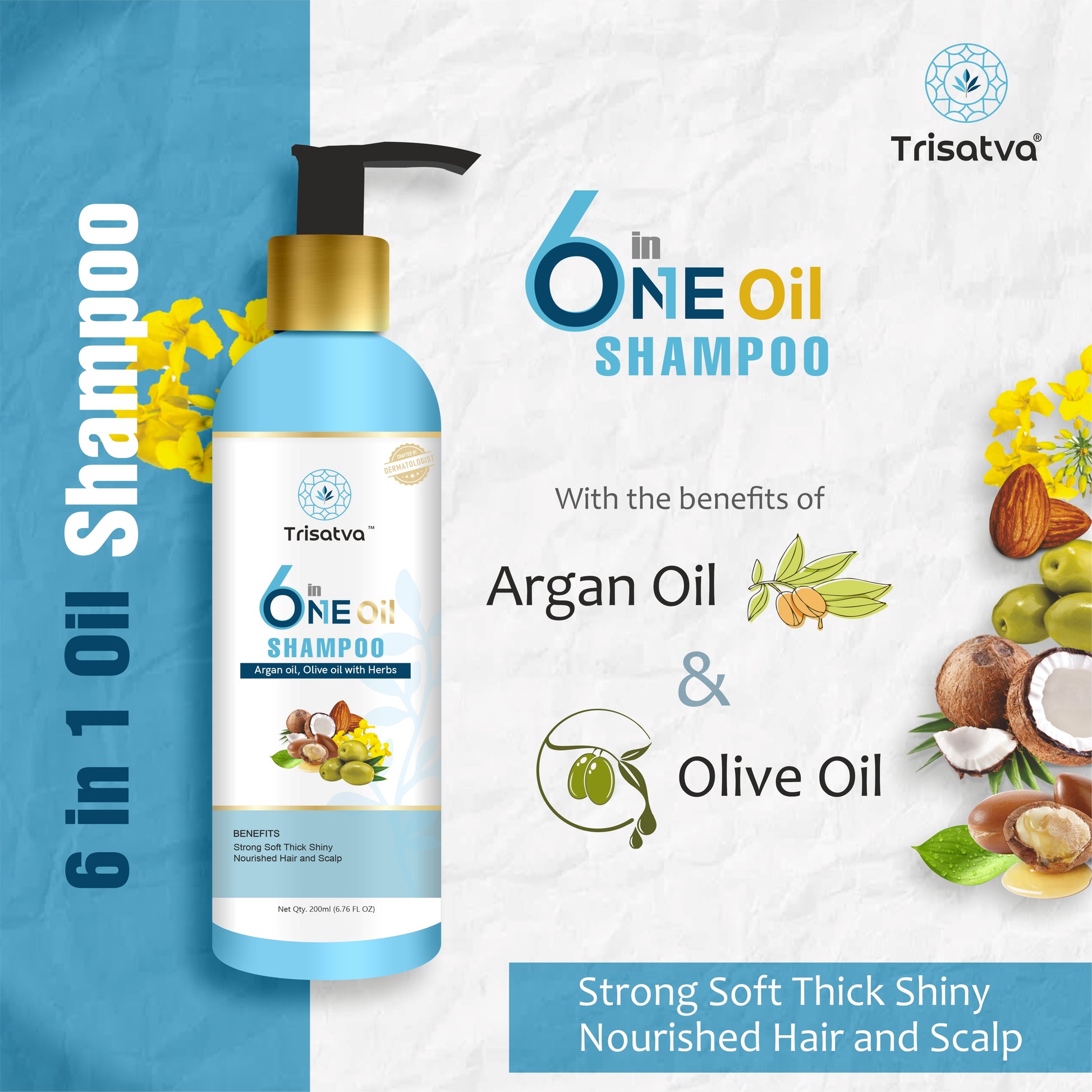 Trisatva 6-in-1 Oil Shampoo | Professional Formula with 6 Oils & 4 Herb Extracts | Dry to Normal Scalp | Hybrid Shampoo for Soft, Shiny, Frizz-Free Hair | Men & Women, 200mL