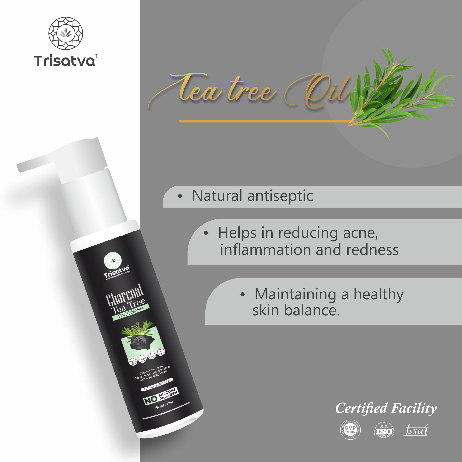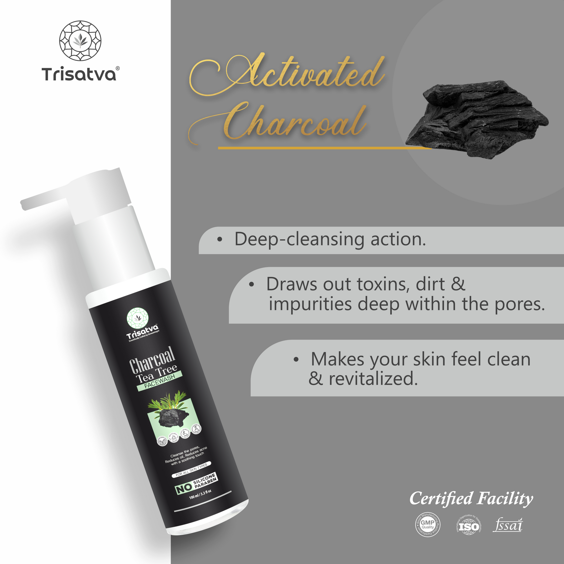 Transform your skincare routine with Trisatva Charcoal Tea Tree Facewash — your solution to clear, radiant skin.
