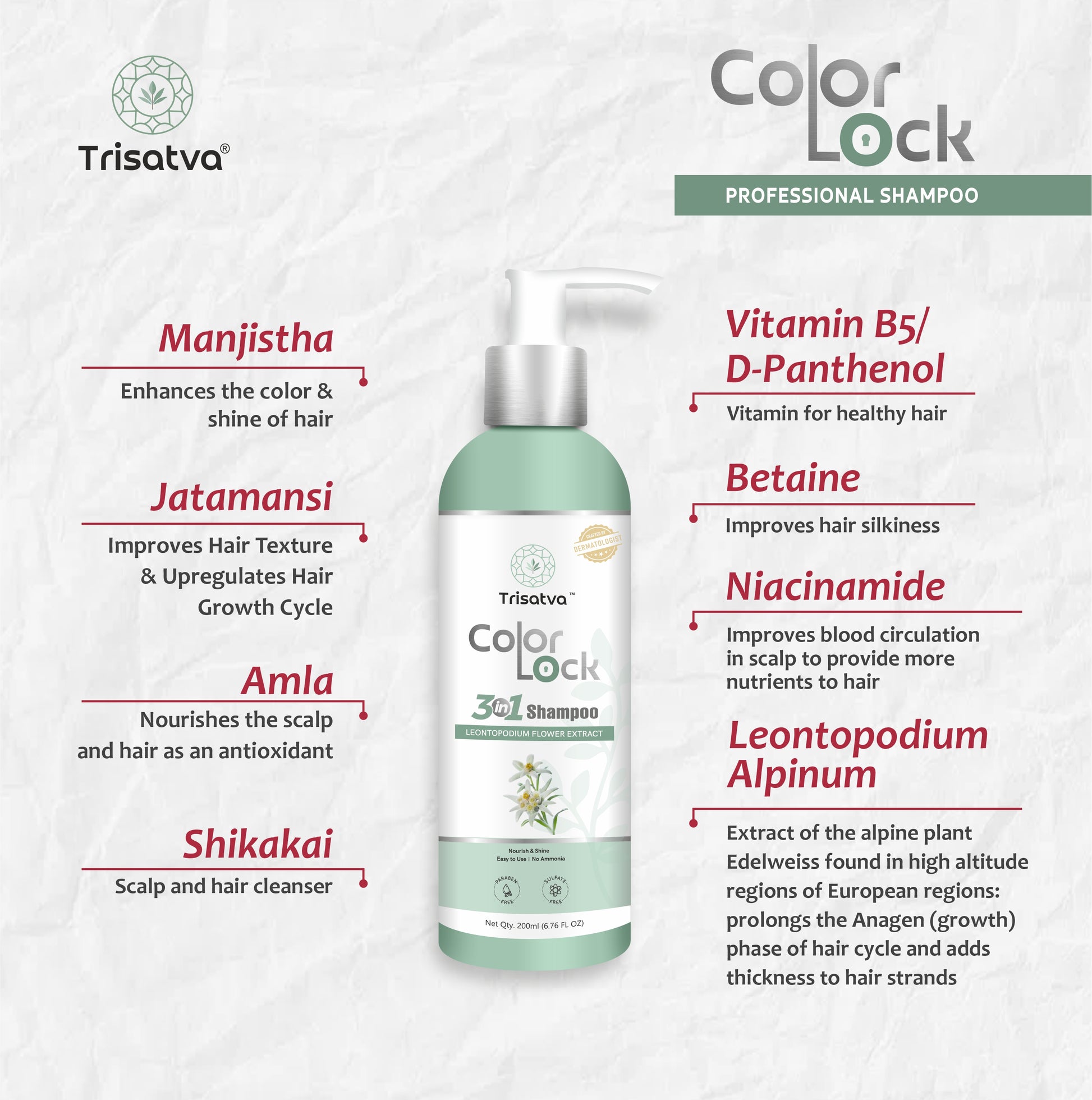 Give your coloured hair the specialized care it deserves. Add Trisatva Color Lock 3-in-1 Shampoo to your routine for lasting colour brilliance and healthy, beautiful hair!