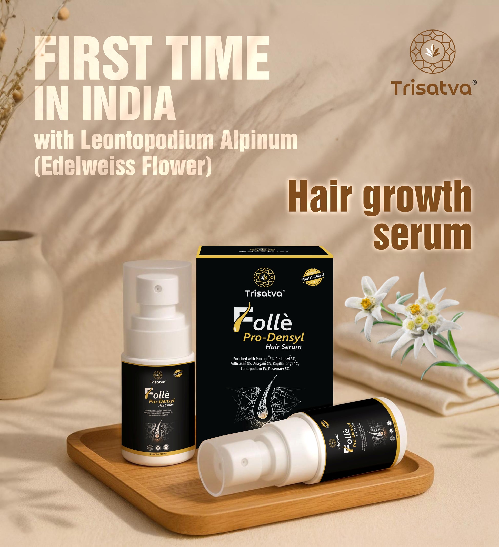 Unlock Fuller, Thicker Hair: Introducing Trisatva Folle Pro-Densyl Hair Serum.