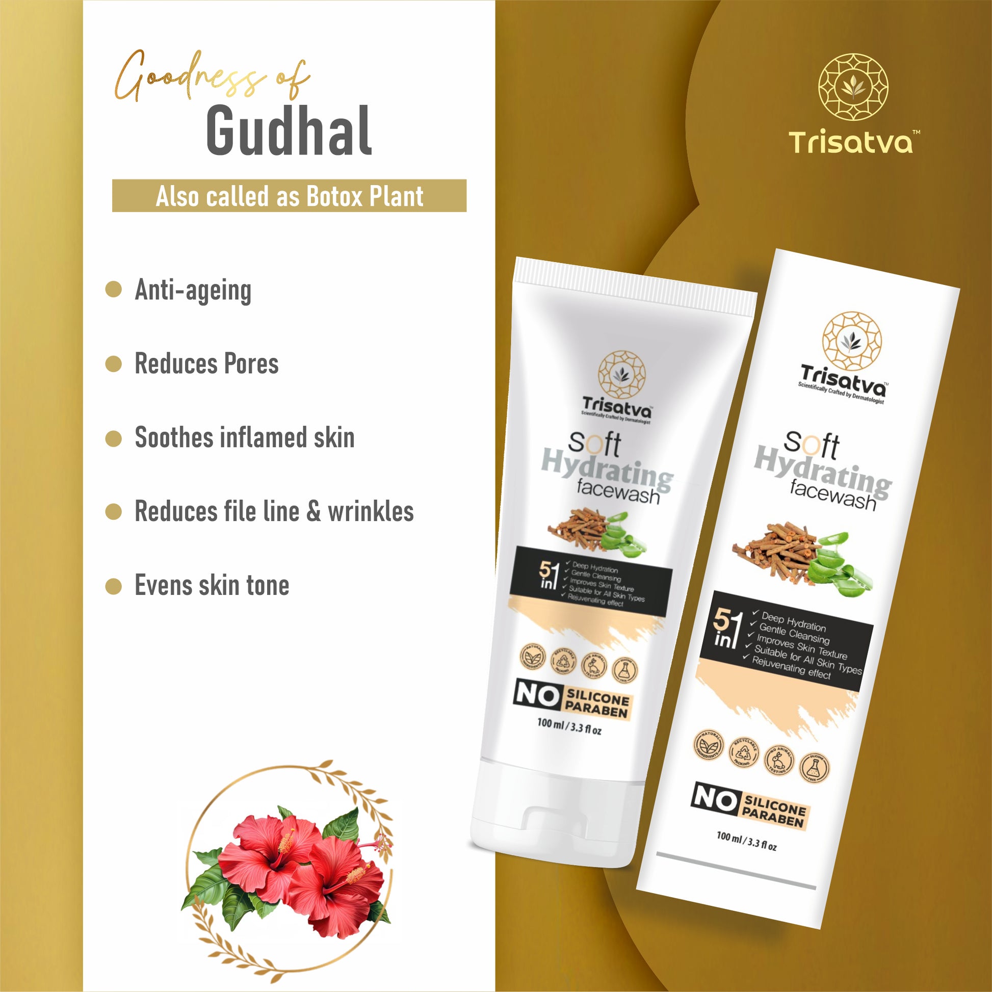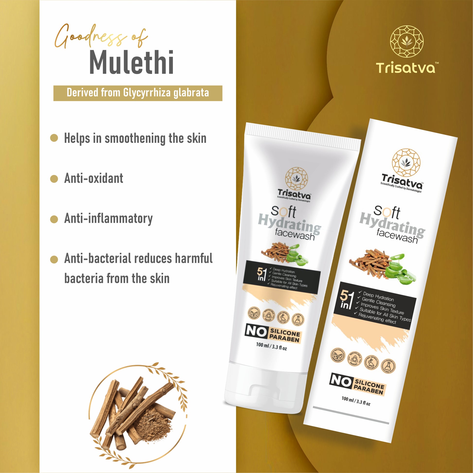 - Trisatva's Soft Hydrating Facewash is a luxurious skincare facewash and has Hyaluronic acid infused with Herbs like Manjishtha, Mulethi, Gudhal and Aloevera which is a unique luxury experience in itself.